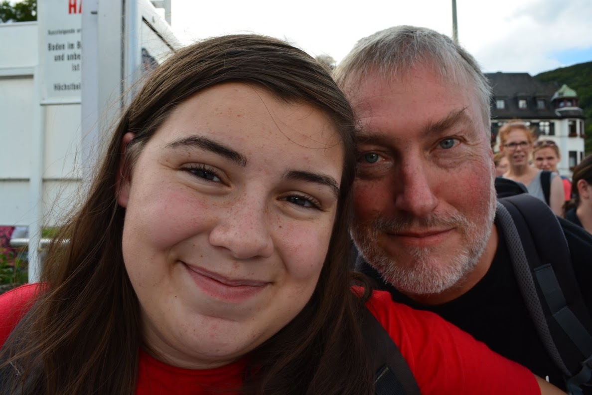 Saturday– Bodo, Khem, and I went on an impromptu hike on the Rhein river. We started at Rüdesheim and took a cable car up a little ways past the wine fields. It was so beautiful. Then we saw this amazing statue of Niederwald monument, Vater Rhein (Father Rhein), and Lady Mosel. We took a quick 1 hour hike through the forest and met up with a ski lift to take us back down. While in the forest we talked a lot about trees, American national parks, and anything that came to mind. Once down the mountain (more like hilly thing) we walked through Hollengasse (Hell’s gate) in Assmannshausen to get a bite to eat before catching a boat back to the train station. It was very peaceful and beautiful. Plus I think pictures speak better than words so look at them and you can see for yourself. Once we got home I was SO tired, but I told my family I would stay up and watch a movie with them. What movie do you think they picked?… a comedy or action or… CLOUD ATLAS! The hardest, most confusing movie EVER. So lets recap… I am super tired, (it’s in German so) I don’t understand anything being said, and I have no clue of any plot. My host family pretty much explained the movie once it was over. (Thank god they can put up with me.)