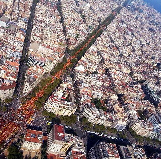 The following two photos are from the National Day of Catalunya, and this was the parade/march for independence. We were aligned in colors to create the Catalan flag.
