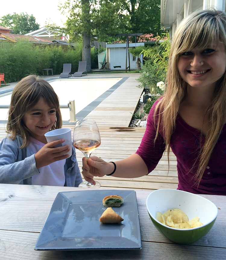 I got thrown in the pool completely clothed by one of the dads at the party. People got out guitars and played and sang along and there was a lot of dancing. I got to visit a small village an hour away with my host mom and 6 year old host sister in Cap-Ferret, where we swam in the lake together and then did some shopping.