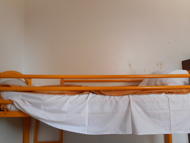 These beds were so awful. They were gross and mine had hair on it from whoever had been sleeping in it last, it hurt my back, and there weren’t ladders to get into the top bunk. My friend Erika had to monkey herself to get onto her bunk and I had to climb onto a stool and then onto a table and then hoist myself up. Seriously though: really uncomfortable. I have been camping in the woods sleeping on tree roots and these beds were barely above that.