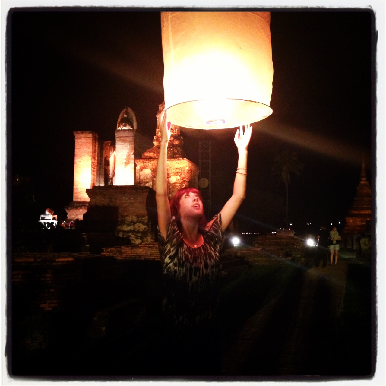 “Releasing my lantern in Sukhothai during the Loy Kathrong festival…sending my wishes and hopes for the coming year towards the stars! ” – Mindy Somers