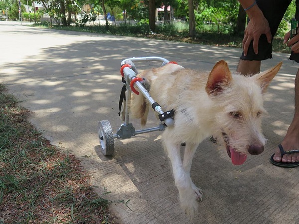 Milo is one of the long time dog residents of the Hua Hin rescue shelter, as he has a neurological disorder that extremely limits his physical mobility. He is unable to move like a normal dog and drags his back legs on the ground behind him when he walks. This puts severe strain on his other joints, and without treatment, Milo could become fully paralyzed, which is a death sentence for street dogs in Thailand. The staff was not optimistic about his recovery, and they worried whether keeping him alive was the humane thing to do.